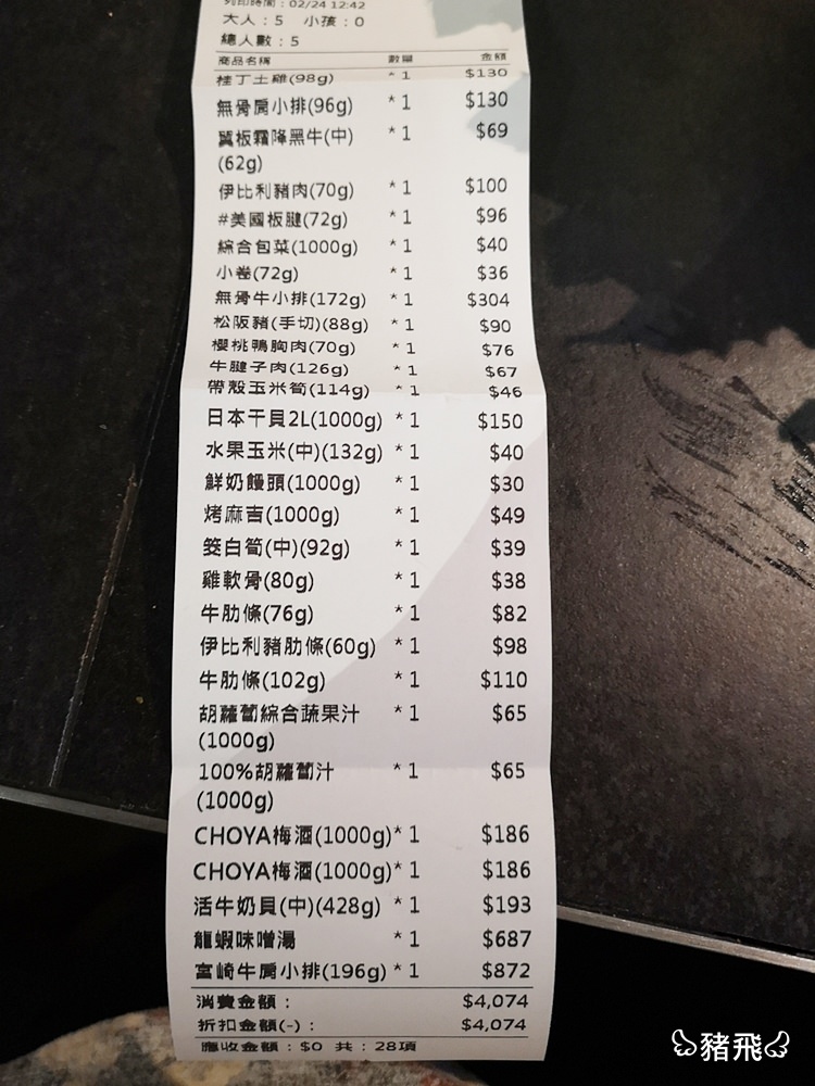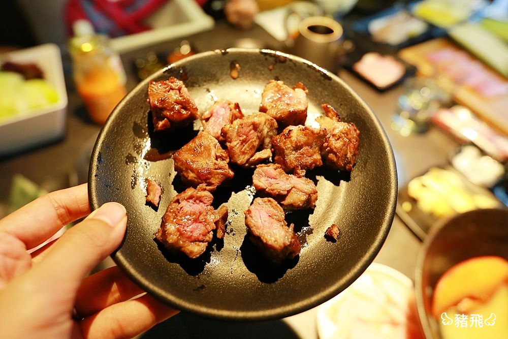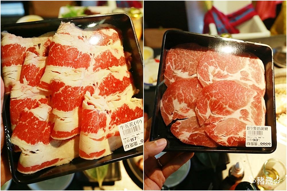 我們五個大人一個小孩點了這樣滿滿一桌食材,乍看之下覺得好像會吃不飽,但經過實地測試後簡直是飽到天靈蓋,喜歡牛肉的我們點了好多種牛喔,像是牛腱子肉$67、翼板霜降黑牛$69、無骨牛小排$304、無骨肩小排$130這些都是價格很親民又好吃的肉品。