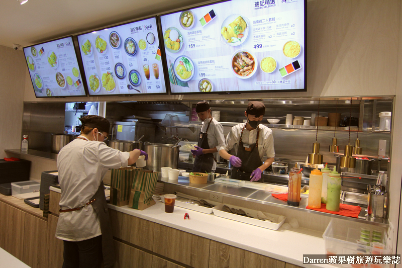 來到瑞記的櫃位上方就有菜單價目表,後面是開放廚房,現點現切過程透明,包括廚房人員戴口罩手套衛生看得見