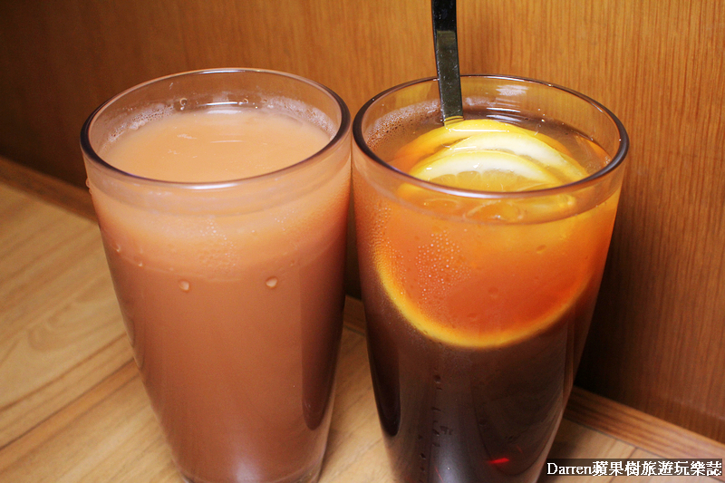 最後是飲料凍檸檬茶和凍奶茶,凍檸檬茶喝之前可以戳一下黃檸檬片,讓茶混合檸檬清香,港式風味的凍奶茶式
