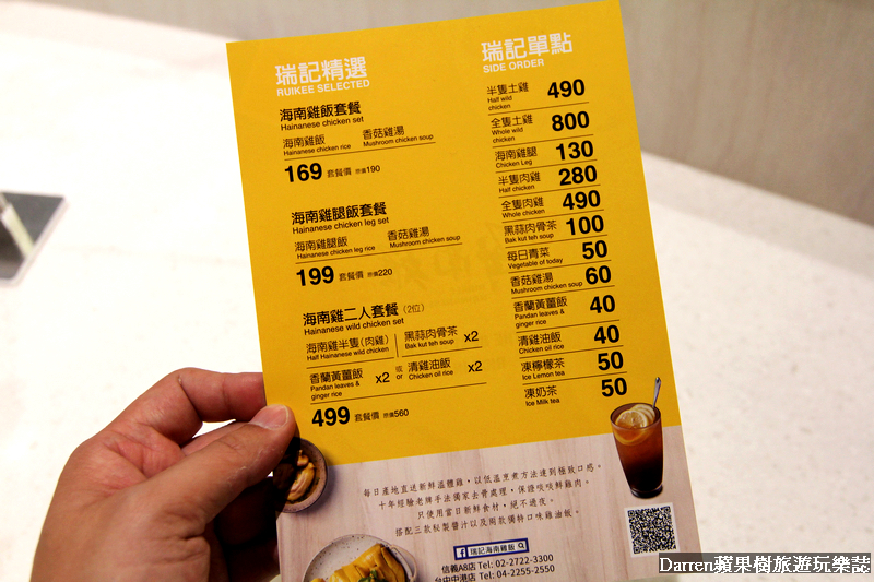 瑞記海南雞飯菜單價目表有套餐和單點,建議選擇套餐就看喜歡吃雞胸還是雞腿,以美食街價位來說算很合理