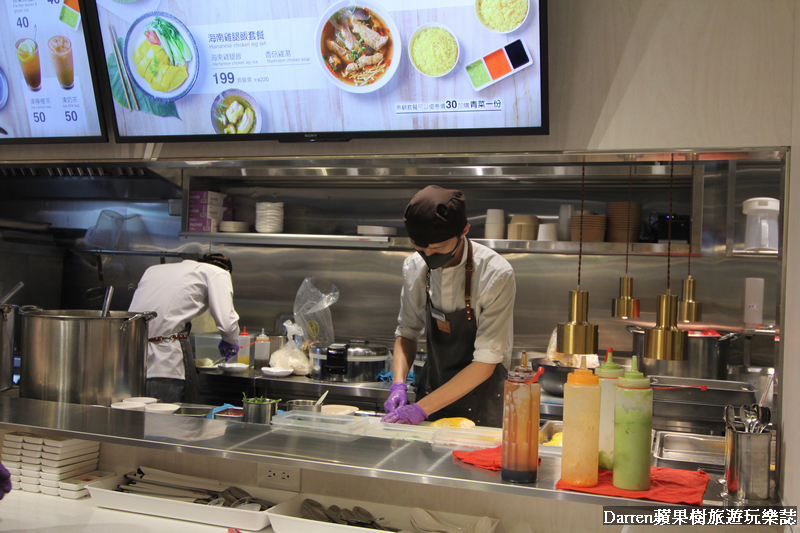 在美食街很少有店家會把整個廚房作業區是半開放式,可以讓人直擊到海南雞飯的製作過程,網路科普海南雞飯