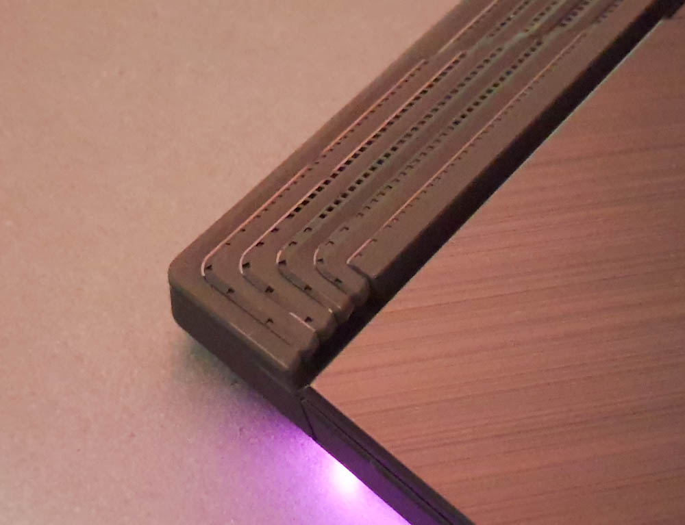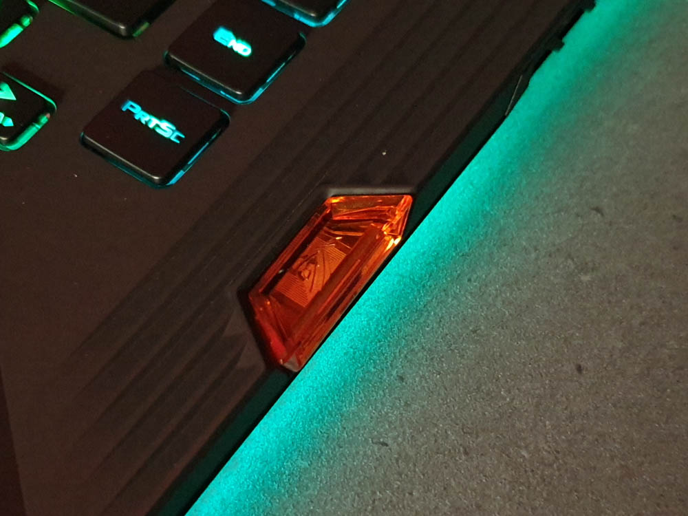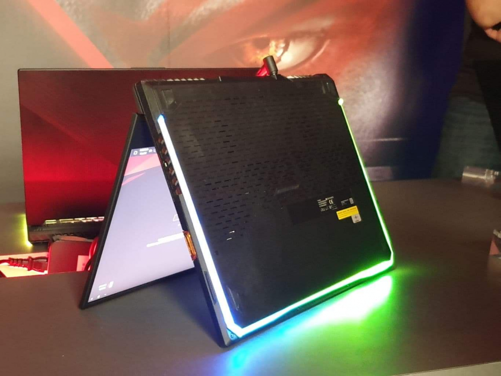 筆電底部也增加了環狀的 RGB 燈光效果,同樣能與 Aura Sync 與鍵盤、或是其他 ROG 設備進行燈光同步,關於增加的 RGB 燈是否會對續航產生影響,ROG 告訴我們,他們只在 U 型燈上放置了 6 顆 LED,因此能在不影響續航下,獲得均勻的燈光效果。