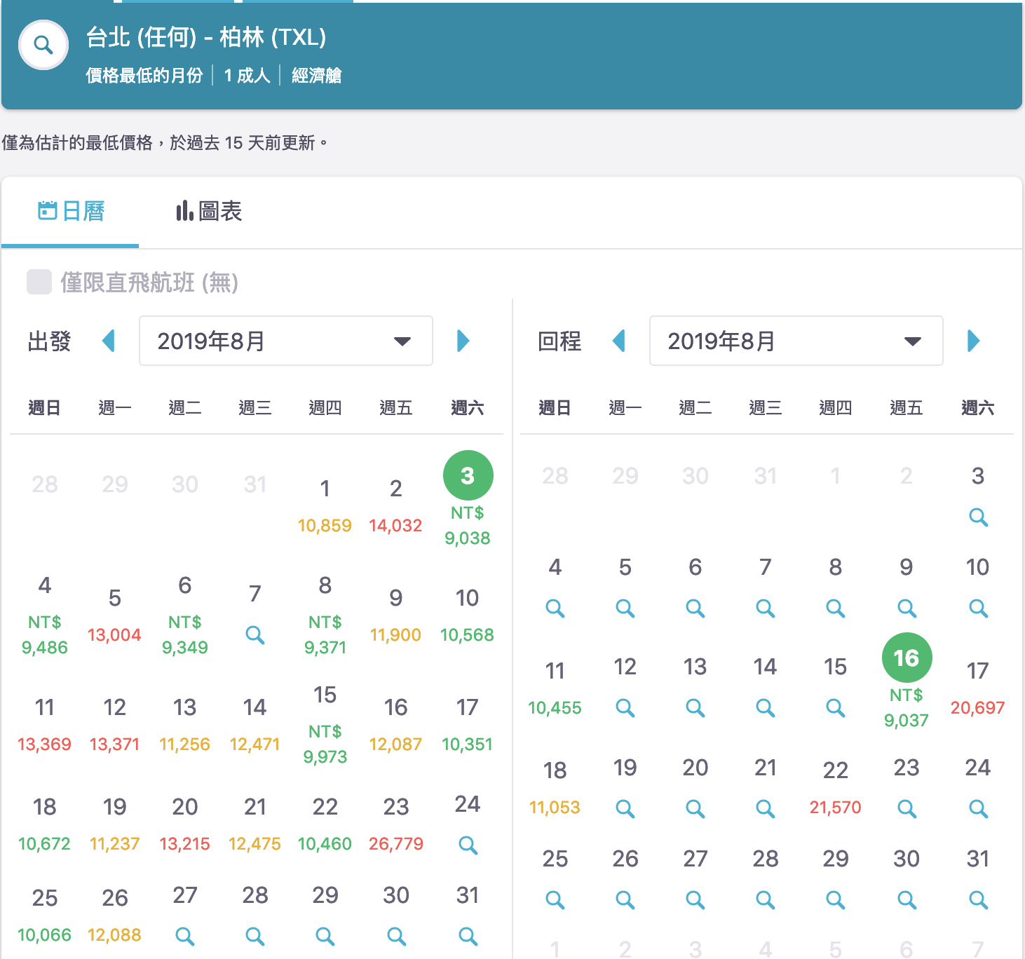 這是我查的台灣飛泰格爾機場大致上機票價格給你們參考,最便宜可買的機票票價大概是$18,000左右!!!我會用skyscanner查整個月份票價,然後篩選最便宜時段出國。