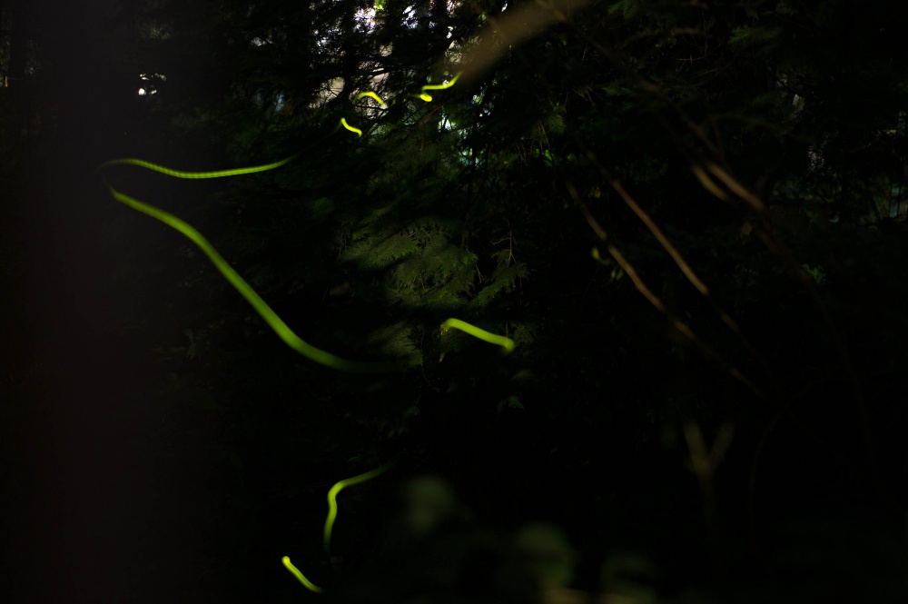 位於兵庫縣丹波市的内尾神社座落於森林之中,每年6月至7月,附近繁衍的姬螢就會在此散發奇幻光芒,旅客可報名當地特有的「水上夢幻之旅」姬營觀賞行程,欣賞長達40分鐘螢火蟲漫天飛舞的美景。