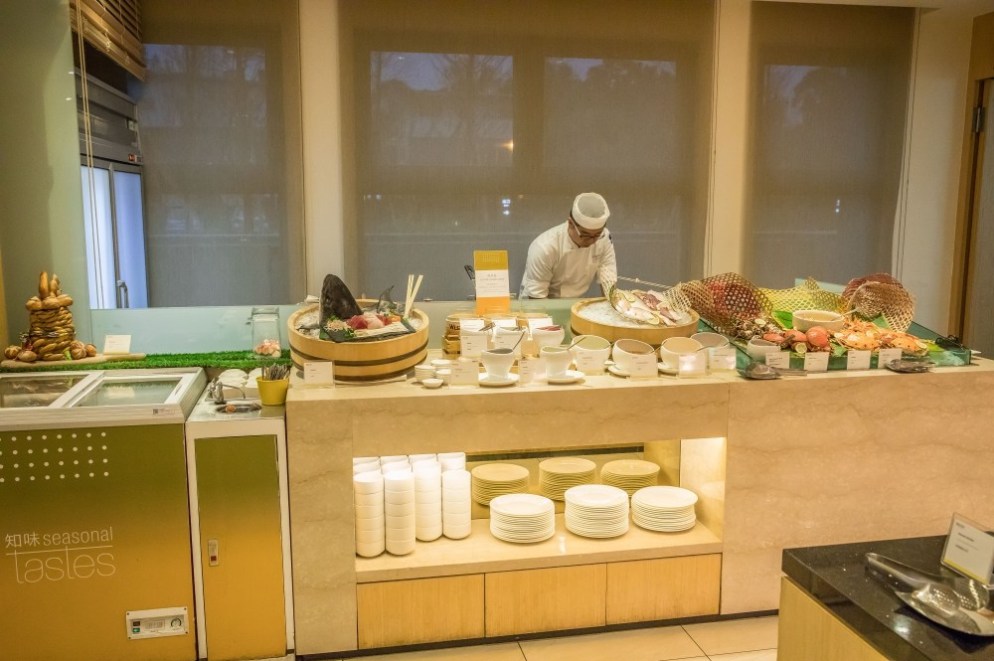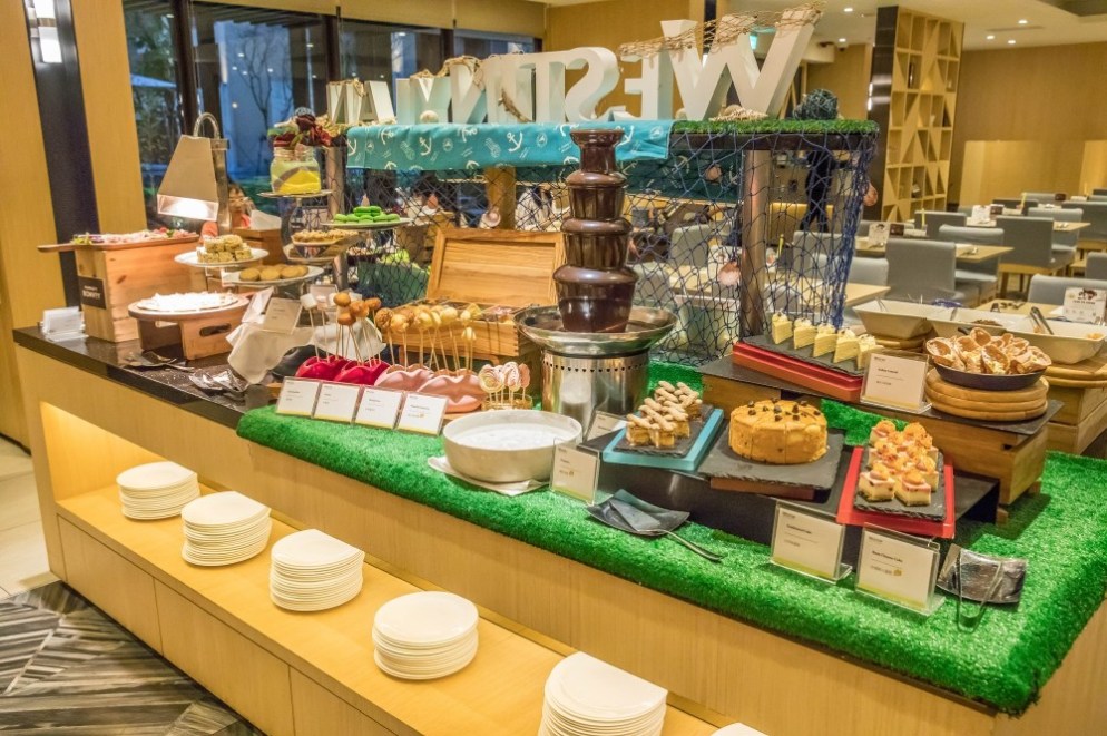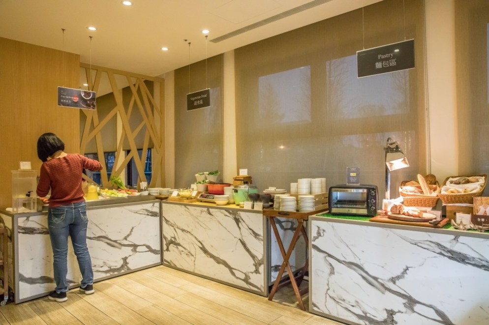 進房休息一下子之後,熊跟喵帶著溫溫準備吃晚餐,今天的餐廳是力麗威斯汀的知味西餐廳,包括當天的自助晚餐與隔天的自助早餐都在這裡享用