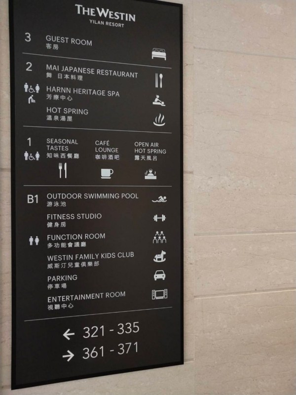 因為力麗威斯汀是以度假村形式興建的方式,所以無論樓高最多只到三樓(都是客房為主),其他的設施也就都分佈在一二樓之間