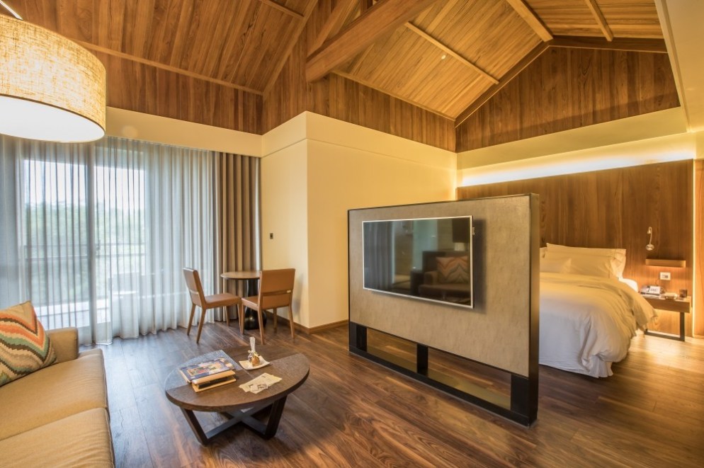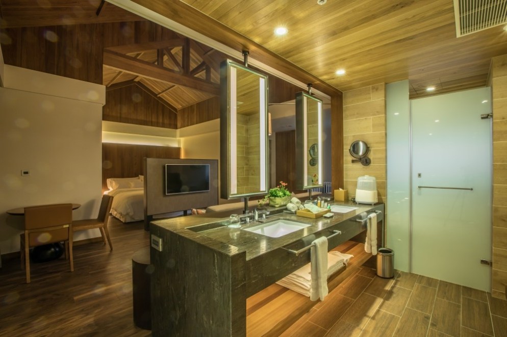 雖然是現代至極的配置,但是整體房型裡的禪風概念跟三角屋頂的小木屋感,正是力麗威斯汀的最大特色