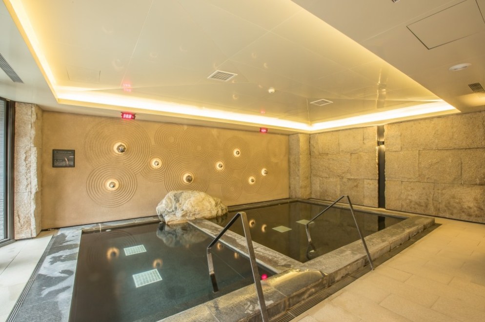 因為這樣的美好溫泉,所以力麗威斯汀自然也設計了露天風呂,這裡的配置一共有兩邊,湯池設計是一方一圓與一黑一白,基本上男湯女湯每日更換,所以只要兩天就能感受到差異