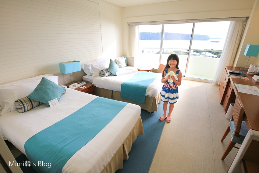 ▲房型全部都是面海,我們訂的是四人房,含早餐是$7,608元(含稅)。光是飯店設施就可以讓小朋友玩上大半天,房間裝潢以藍白色為主,採光明亮,加上窗外的景色,讓人好喜歡好喜歡。