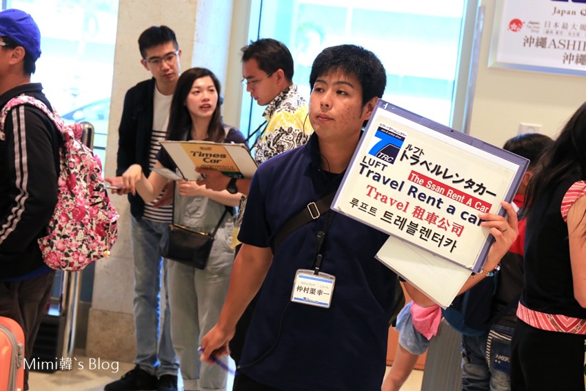 我們這趟來沖繩是搭乘華航,從桃園機場到沖繩那霸機場,時段是早去午回,我覺得是蠻適合帶小朋友的班次。同班機根本就像親子專機,一大堆都是家庭組合。因為我們已經透過網路租車比價,有事先預約TRC租車,工作人員會在機場出境大廳拿《TRC Travel 租車公司》的牌子接機,看到他就主動上去確認租車人的資訊即可,然後他會帶著租車的客人去搭免費接駁車前往TRC停車場辦理取車手續。