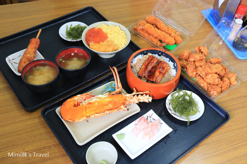 ▲早上浮潛,中午直接殺來泡瀨漁港 パヤオ直売店吃海鮮,雖然聽說招牌的海膽美乃滋烤龍蝦價格越來越貴,但姊還是決定來試試看。整體來說我是覺得龍蝦套餐貴是貴了點,但其實口味還不錯,另外現場買生魚片、炸物還滿便宜,可以吃很豐盛的一餐。