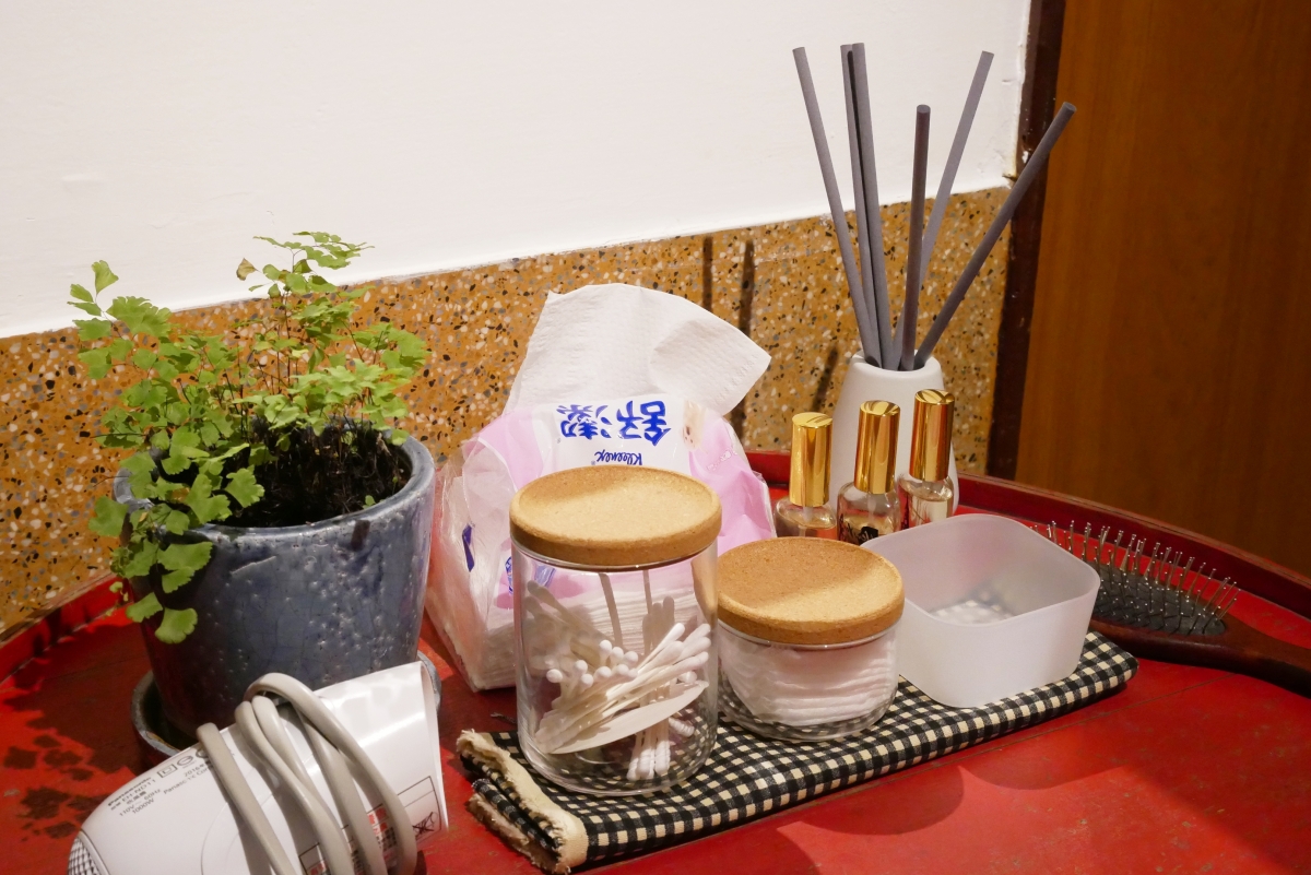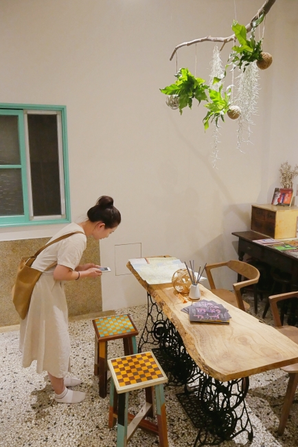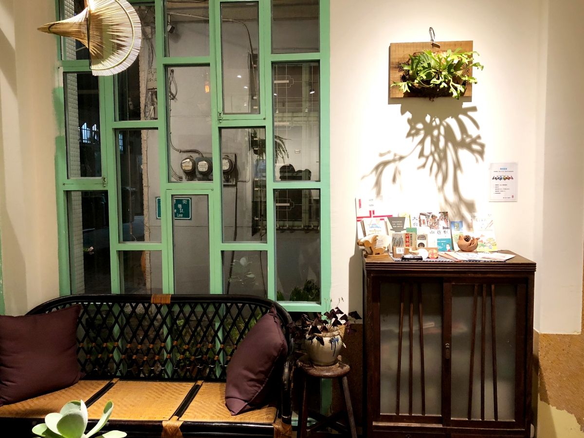 為了維護環境清潔,進門後要先換上室內拖鞋,接著就可以開始在這棟老宅裡享受每一個角落。外觀充滿綠意的空間,經過都忍不住多看一眼,離開前也在門口拍了好幾張照片,拍到捨不得離開的好地方。