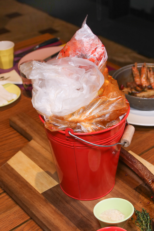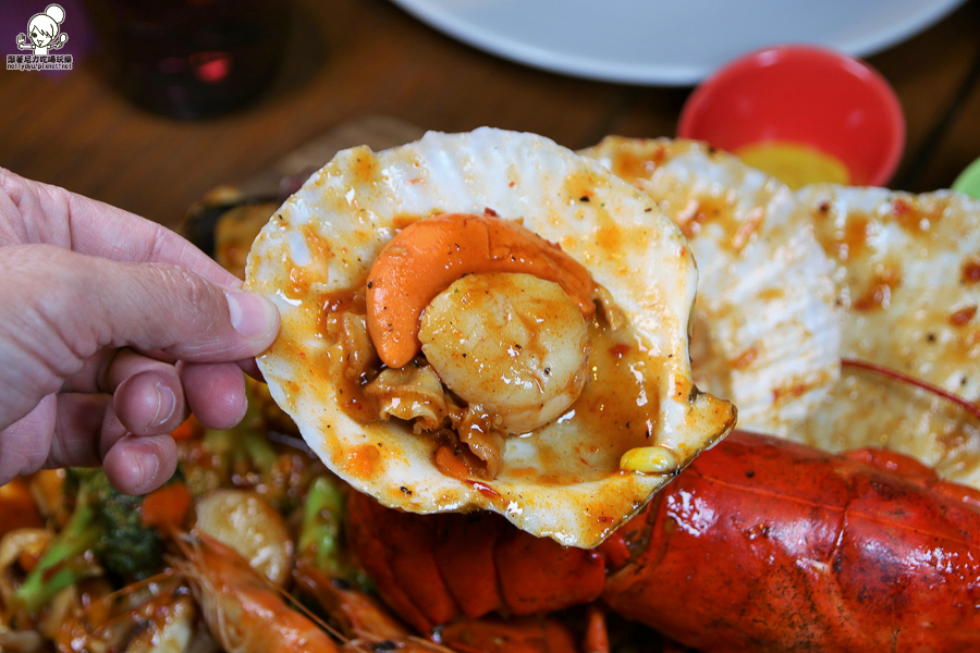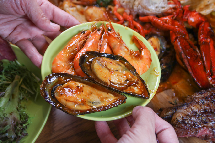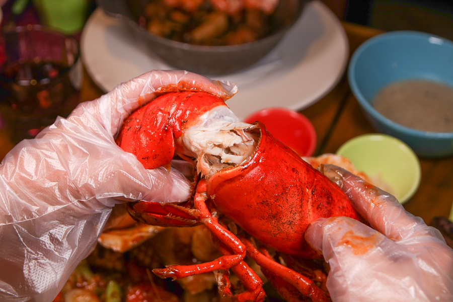 搭配主廚特製南洋風味醬汁,帶手套直接拿取食用的澎派海鮮