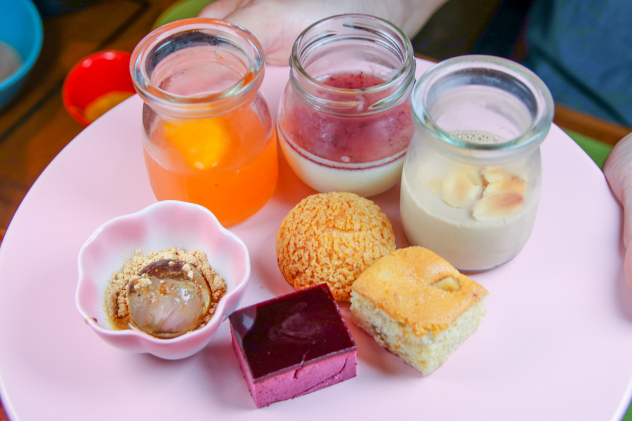 多樣的甜點、水果可挑選,還有日式風味的甜點兒