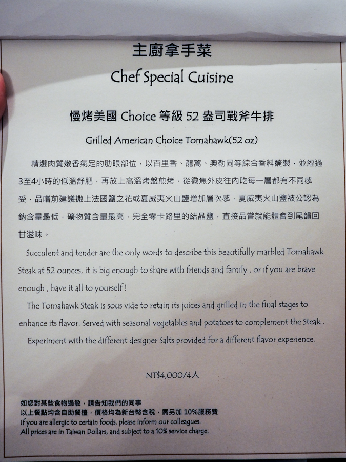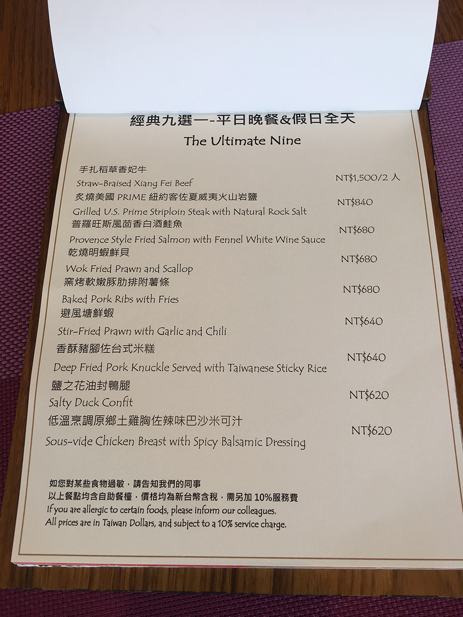 預算沒那麼高的朋友,也可挑選其他排餐,晚餐半自助餐價是620~840元左右(包含半自助式吃到飽,加1成服務費)