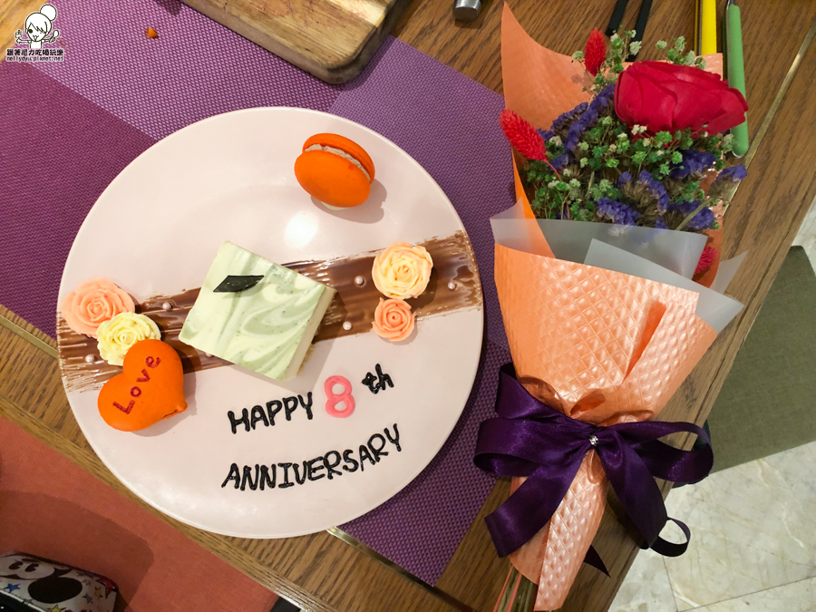 服務人員居然還偷偷地端出飯後甜點,寫著八週年紀念日,超sweet~