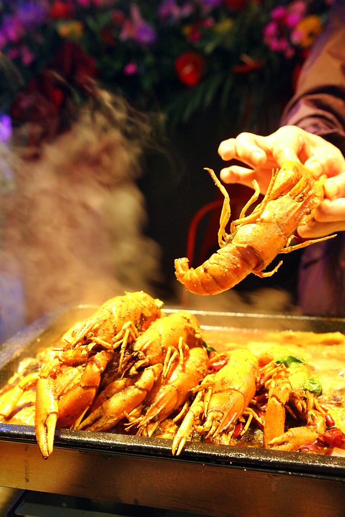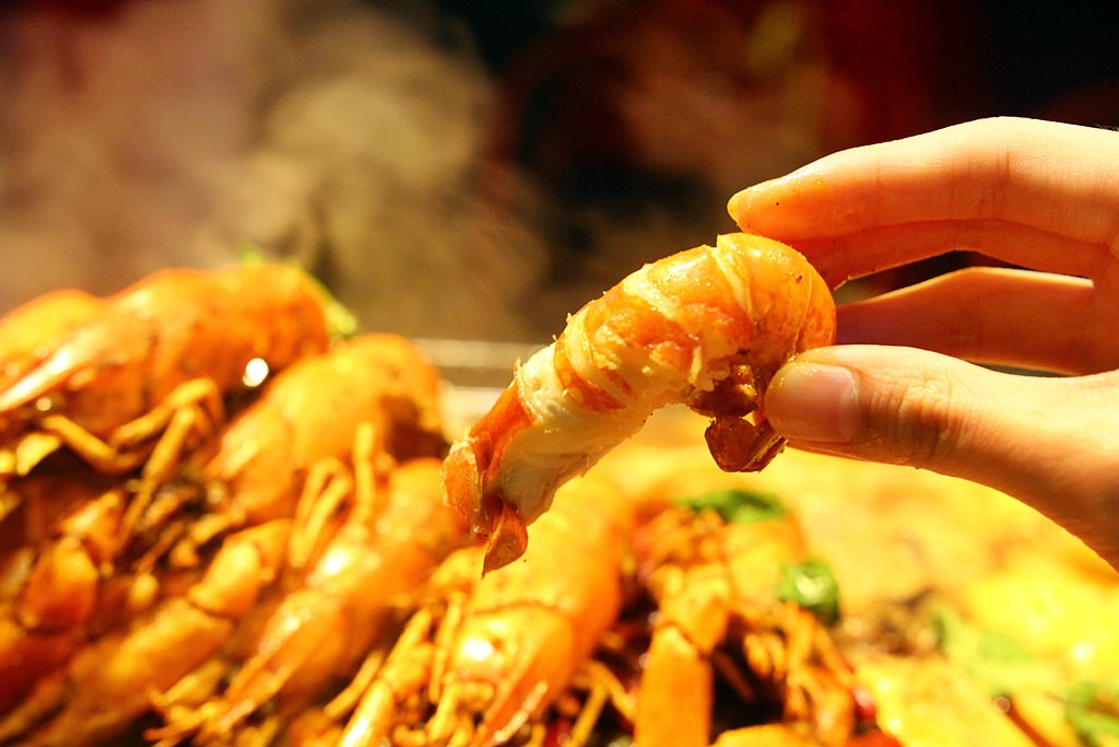 小龍蝦新鮮、肉質肥美、富有彈性,單吃就很美味,喜歡重口味也可以搭配醬料區的沾醬一起食用。