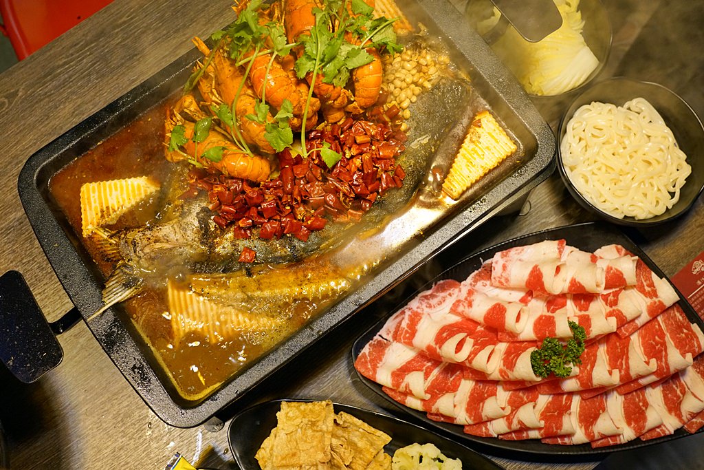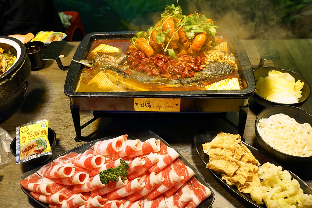 水貨烤魚火鍋主打重慶口味的炭火烤魚,提供多種口味選擇,麻辣帶勁、份量十足,烤魚吃完再涮肉,接著吃麻辣火鍋的概念,還有每日限量的熊掌麻辣臉盆麵也是必吃推薦,喜歡吃辣的朋友又多一間大快朵頤的好去處啦!