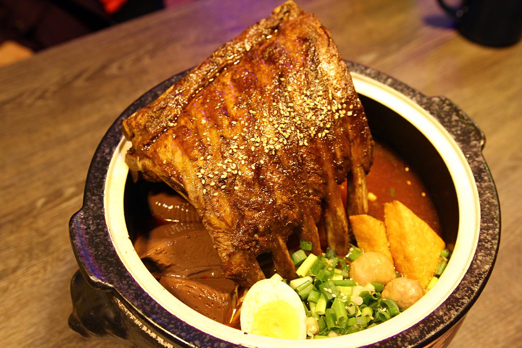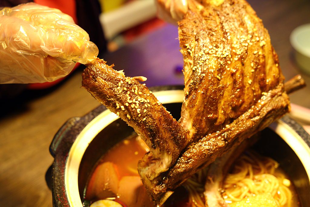 一端上桌把我們嚇傻了,會不會太大盆?!包含炭烤肋排、麻辣鴨血、溏心蛋、豆包跟麵。這樣一份只要288元,個人覺得很划算,必點👍每日限量供應,想吃得趁早,建議平日中午來唷!