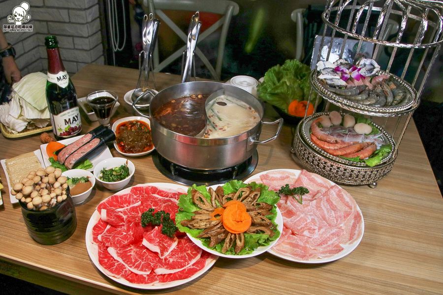不僅有瀑布肉肉,還有華麗的英式鳥籠海鮮拼盤,吃鍋物也可以很浪漫