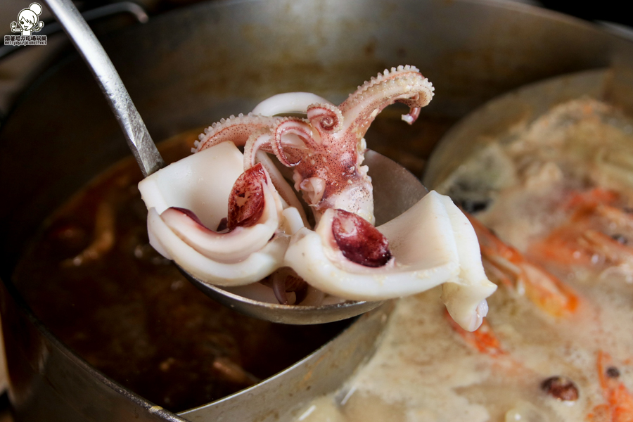 湯頭裡面不僅有藥膳還有蒜頭,帶有豚骨香氣的柔和湯頭,涮蔬菜、海鮮最正點
