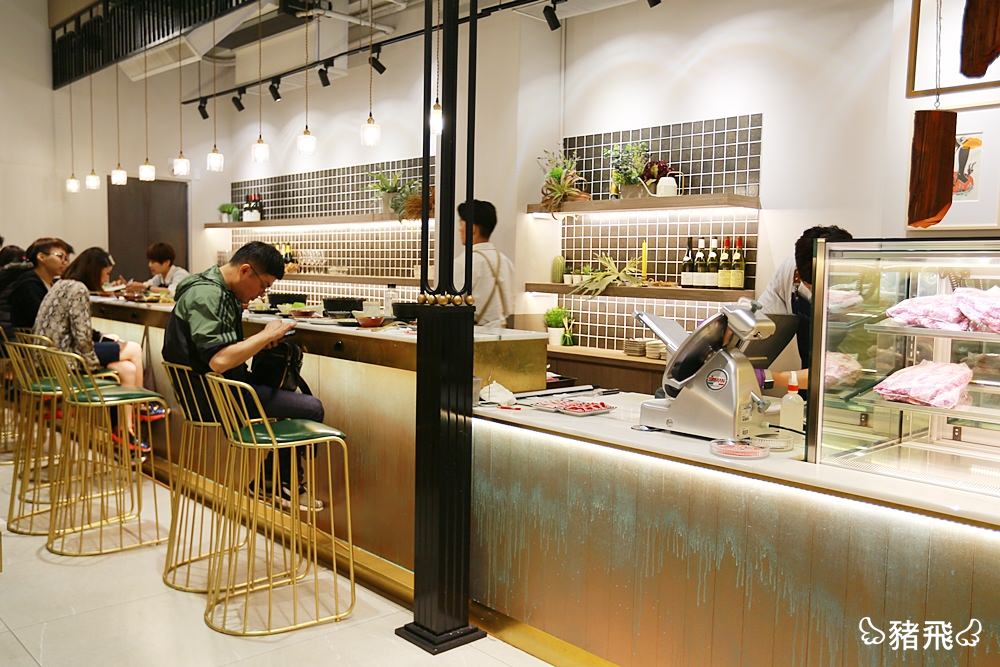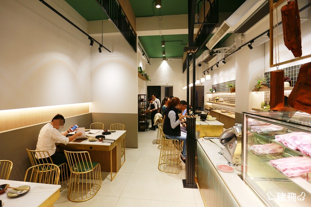 用餐區以設計款金屬椅結合大理石桌面,要不是中間擺著鍋物用的火爐,來這裡吃甜點咖啡一點也不違和啊,整個空間挑高明亮呈現出寬敞感,除了一樓用餐區二樓也有座位!這家店最大特色是賣現點現切冷藏熟成肉品,原肉冷藏櫃就在吧台上,可以看見店家使用的肉品品質,而且冷藏肉吃起來特別鮮甜好吃呢。