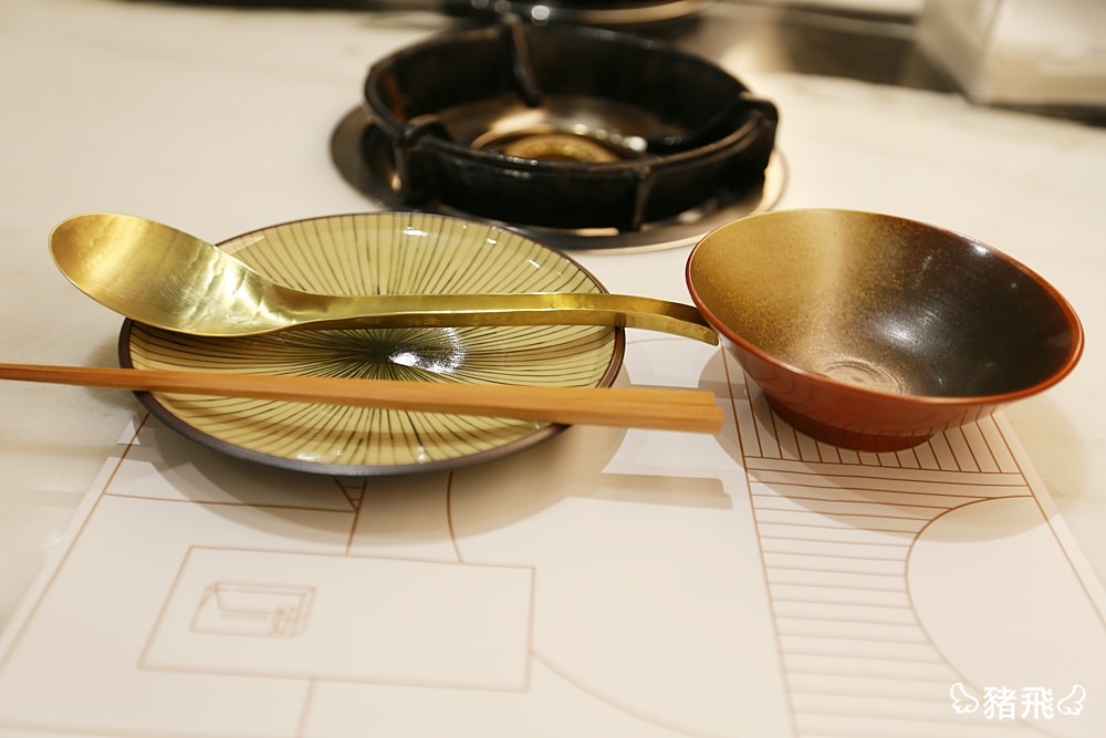餐具很網美風耶!餐具是從日本原裝進口呈現低調奢華感,金色湯匙好大啊,用來喝湯很豪邁,讓我聯想到含著金湯匙出生,雖然出生不能改變,但用金湯匙喝湯總行了吧(笑)。