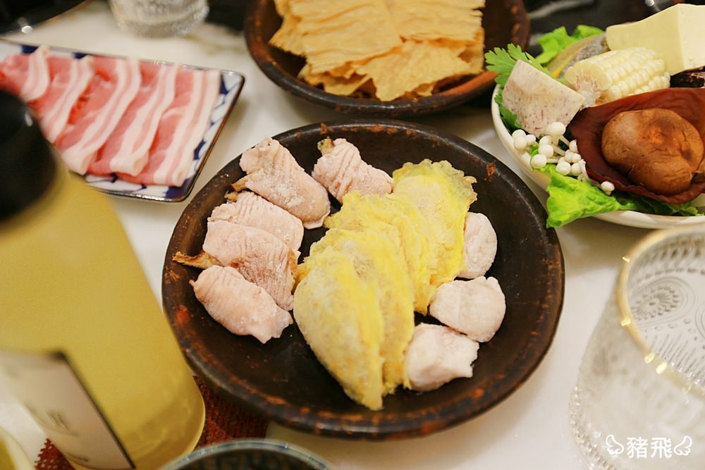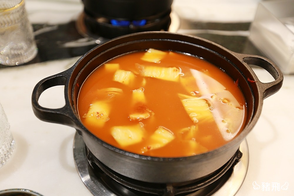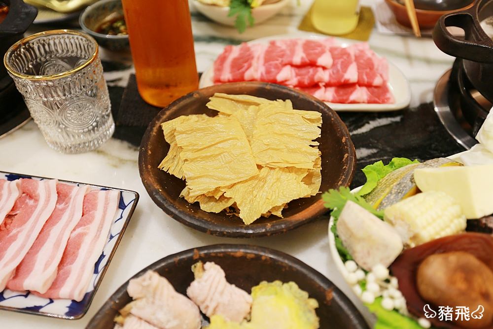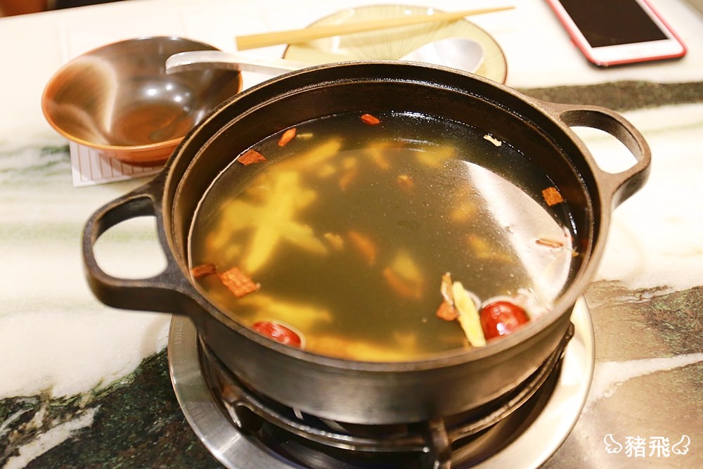 一般火鍋店的藥膳湯底都是用碎藥材包,這裡是可以看見的各種藥材,與清爽老母雞湯一起煮口感回甘溫潤,適合用來涮豬肉、雞肉,甜度特別明顯,這個湯頭我喜歡淡淡的中藥香,喝起來清爽甘甜。