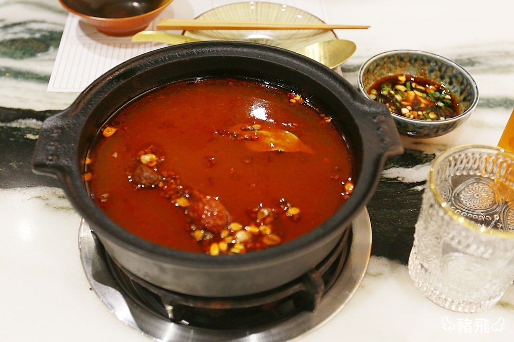 紅通通的麻辣鍋其實沒有想像中的火辣,湯頭是可以喝的溫順麻辣湯,藥材香氣勝過香麻,無辣不歡,夏季點一鍋特別開胃。