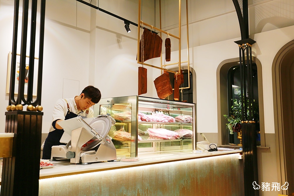 點完餐後就可以開始看帥帥小鮮肉切肉秀(笑) 切肉機就擺在吧台上,這種現點現切的體驗感覺肉好好吃啊!新鮮就是無敵。