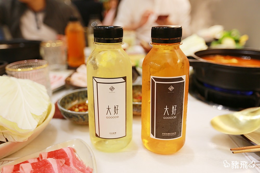 這裡比較特別的是沒有提供茶水,最近有打卡送茶活動,我們選了「日出金萱」及「手採有機紅玉紅茶」。金黃色茶湯的金萱茶帶有淡奶香及花香,琥珀色茶湯的紅玉帶有淡肉桂、薄荷香,冰涼滋味跟火鍋特別搭。