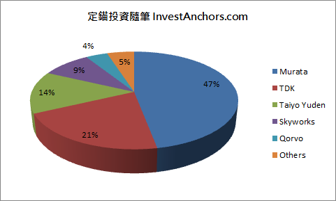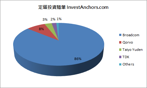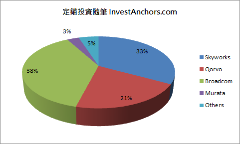至於砷化鎵PA,主要由Skyworks、Qorvo、Broadcom掌握(詳見【圖五】),代工夥伴主要是穩懋、宏捷科,除Broadcom與穩懋合作較緊密之外,Skyworks、Qorvo都有自建產能。