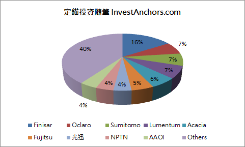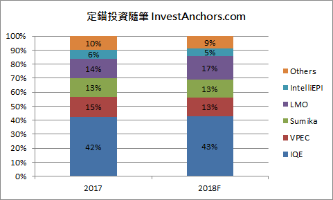 【圖二】全球化合物磊晶片主要廠商市佔率(含光通訊、無線通訊)