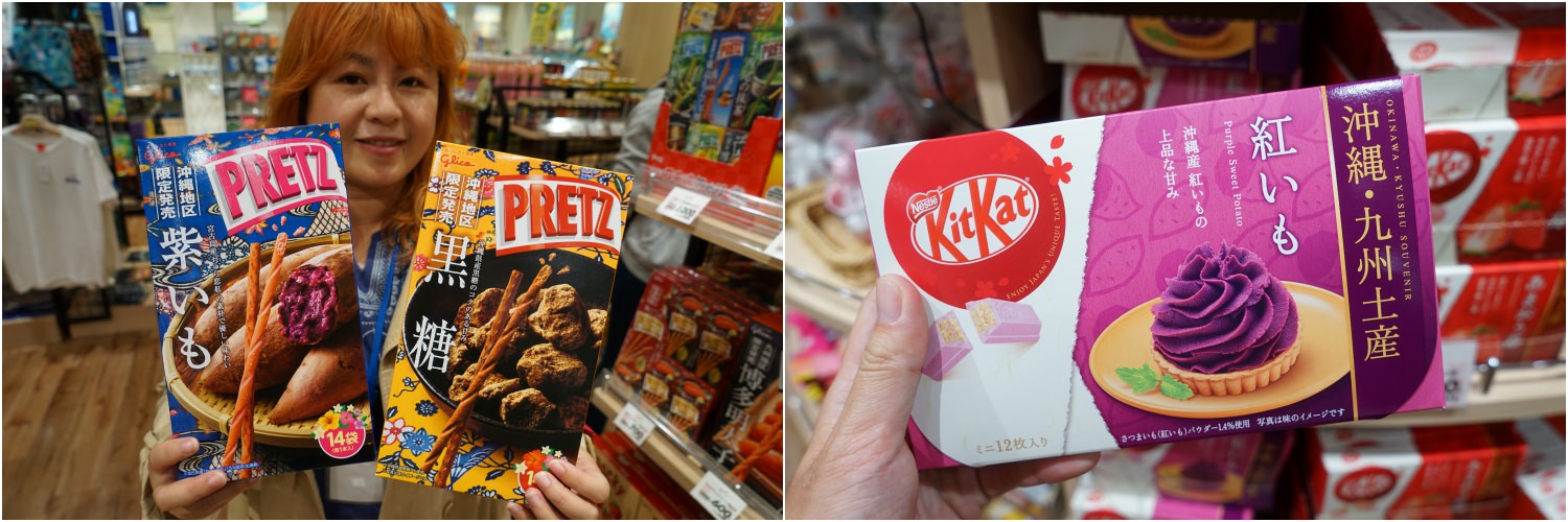 PRETZ餅乾棒KitKat巧克力兩間日本食品大廠,都有推出黑糖&紅芋口味沖繩限定商品。其中PRETZ兩款餅乾棒都非常刷嘴,而KitKat巧克力對我來說比較甜,推薦大家可以買來試試看,喜歡再多買。