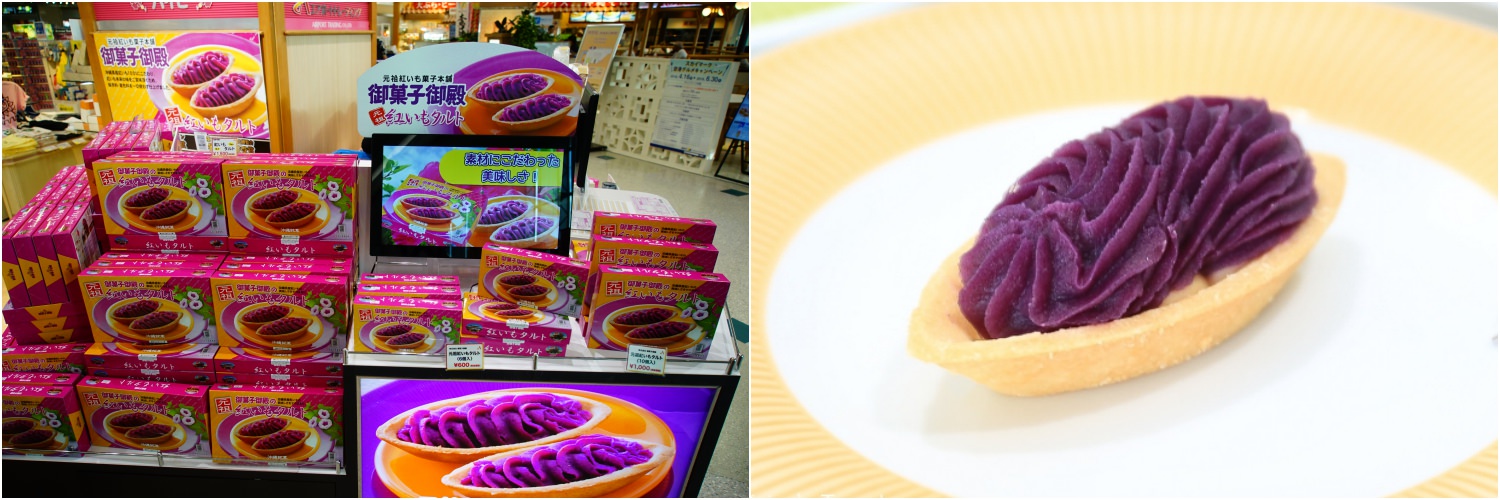 紅芋就是台灣的紫心地瓜,是沖繩當地重要作物,所以也衍伸出非常多以紅芋為原料的沖繩必買伴手禮,其中最常出現的就是紅芋塔,吃起來綿密且甜度較低不膩口。而各家品牌又以御菓子御殿規模最大,連續六年獲得「世界食品品質評鑑金獎」,除了有不少分店之外,各家土產店也都會賣,非常熱銷。