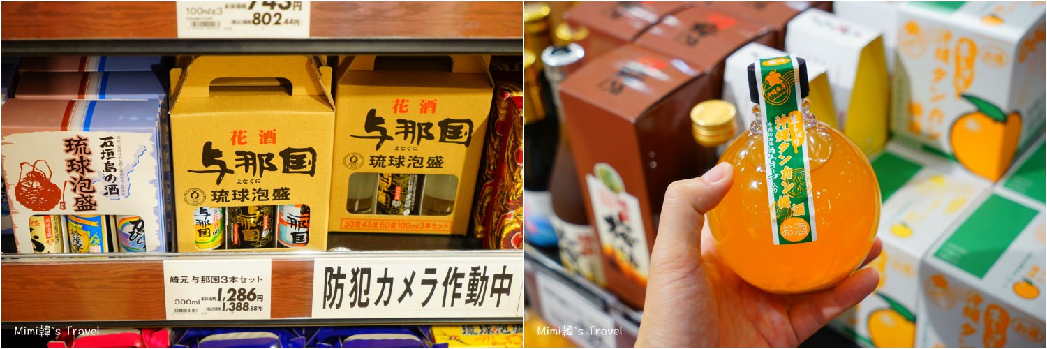 沖繩泡盛前半段製作和日本清酒差不多,但後來透過蒸餾把酒精濃度提高到30%左右,喝起來接近威士忌,香醇辛辣後勁很強;而梅酒就比較適合女生,其中例如黑糖梅酒桶柑梅酒都很有沖繩味,無論AEON量販店、驚安殿堂、國際通都有很多店在賣。★記得攜帶優惠券