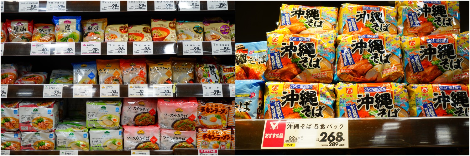 日本每個地方都有具在地特色的泡麵,而沖繩最受歡迎的就是包裝鮮豔的沖繩そば泡麵啦!