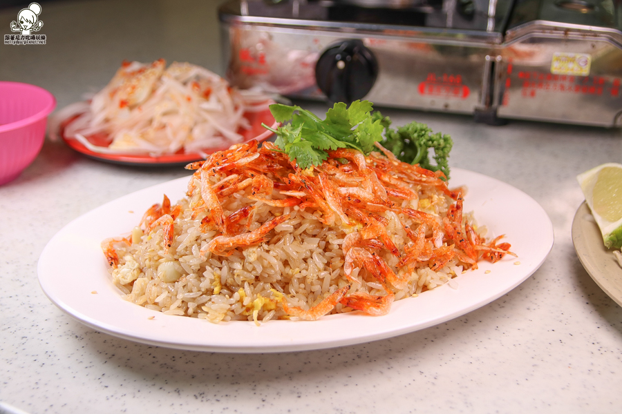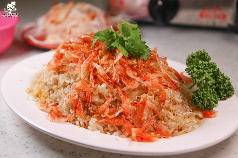 使用長米飯,粒粒分明的炒飯,鋪上滿滿的東港櫻花蝦