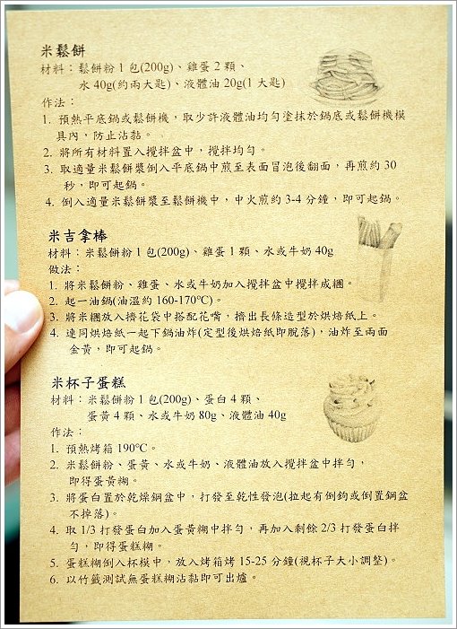 ▼這款米鬆餅不只可以做鬆餅,還可以做成米吉拿棒、米杯子蛋糕,能使用的範圍非常廣泛,大家都可以視個人喜愛來製作甜點唷!
