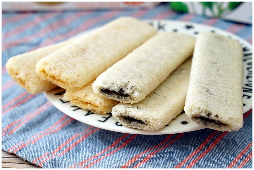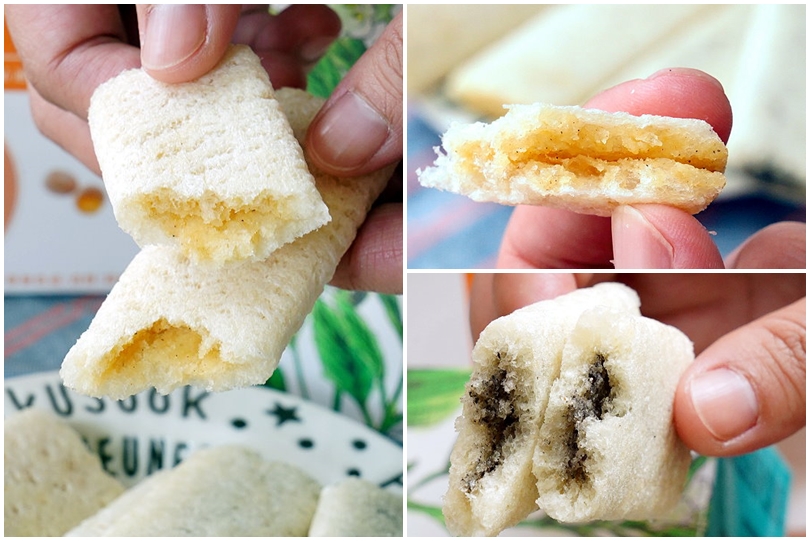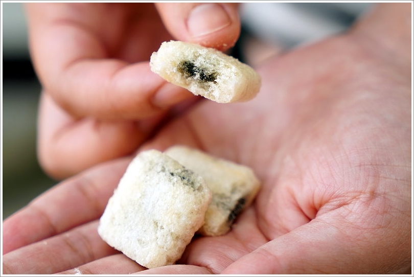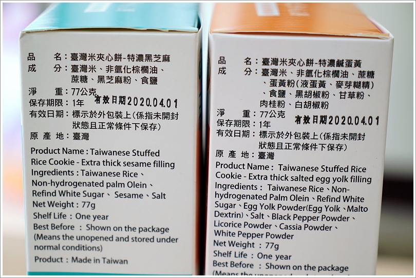 ▼酥脆又帶點米香的餅身夾入濃郁的鹹蛋黃、黑芝麻等內餡,每一口都吃得到內餡口感!鹹蛋黃口味吃起來鹹甜中又帶點肉桂、胡椒的香氣,跟一般常吃到的鹹蛋黃餅乾口味不太一樣,算是風味獨特又涮嘴的一款!另一種黑芝麻則是有濃郁的黑芝麻香氣,微甜又爽脆的口感非常耐吃,連長輩也很喜歡~
