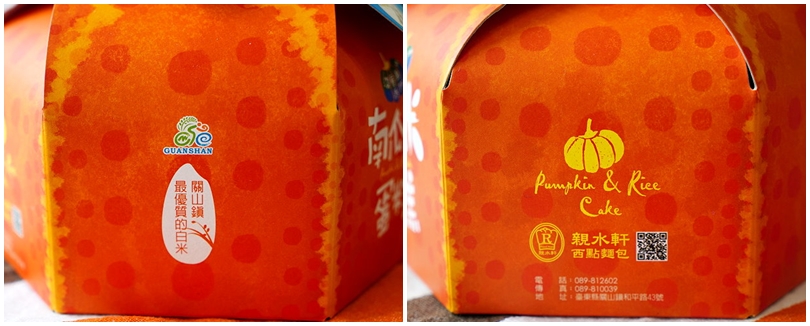 ▼這款南瓜米蛋糕也是非常適合當作母親節蛋糕,外盒特別設計的跟南瓜一樣,看起來帶點童趣又討喜!