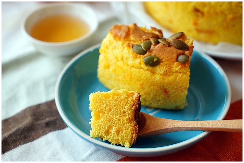 ▼南瓜米蛋糕吃起來紮實又軟Q,帶有微微的南瓜香甜,搭配上頭爽脆的南瓜子,更增添不少口感層次!