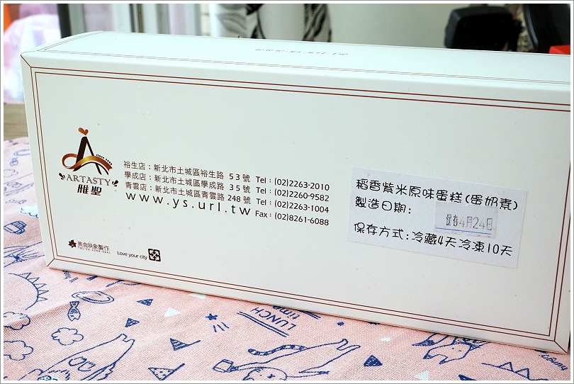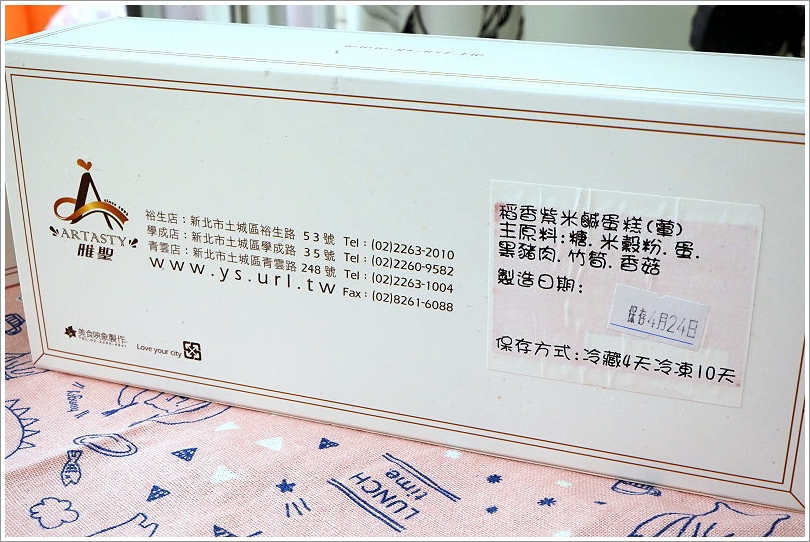 ▼另外一款「紫米鹹蛋糕」也是一樣在盒底有標示主原料、製造日期、保存方式、製造商資訊,讓人更加一目了然!