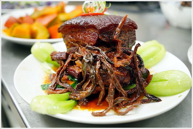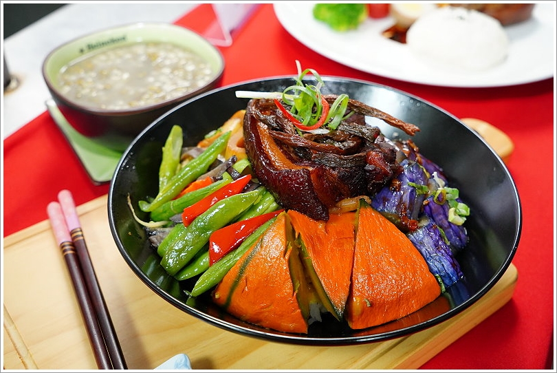 ▼不管是滷至油亮動人的主菜還是繽紛的季節時蔬,看起來澎湃又美味,曬乾的長豆更增添不少清爽口感,香氣十足,讓人吃起來非常涮嘴!
