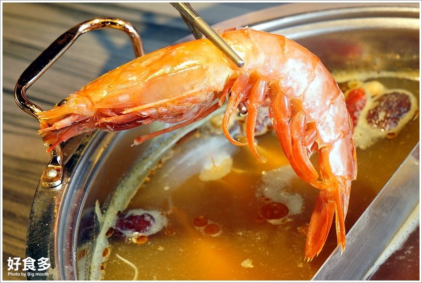 ▼天使紅蝦個頭超大一隻,差點要塞不進我們的鴛鴦鍋啦!