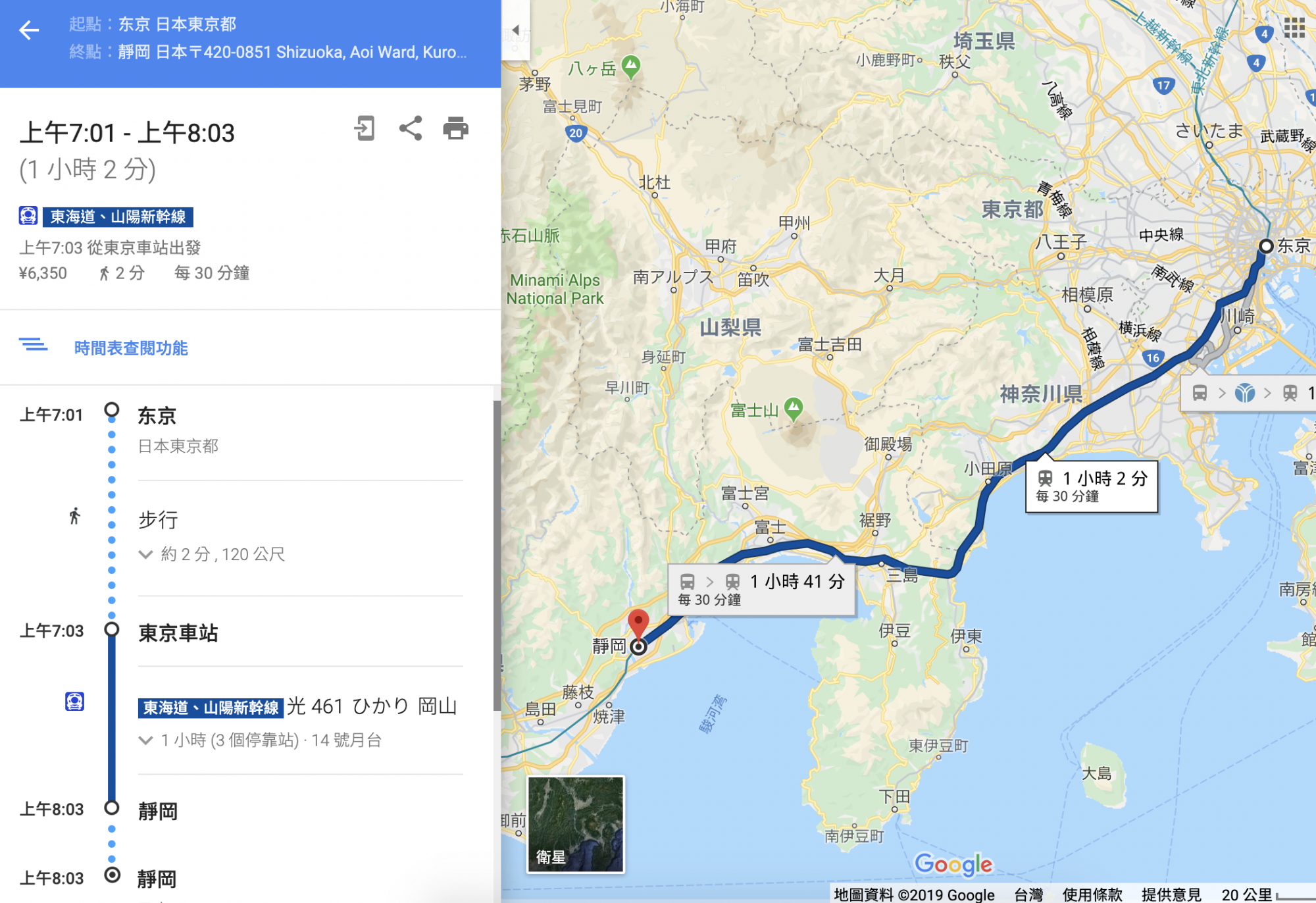 - (東海道、山陽新幹線)靜岡⇢東京|1小時|¥6,350