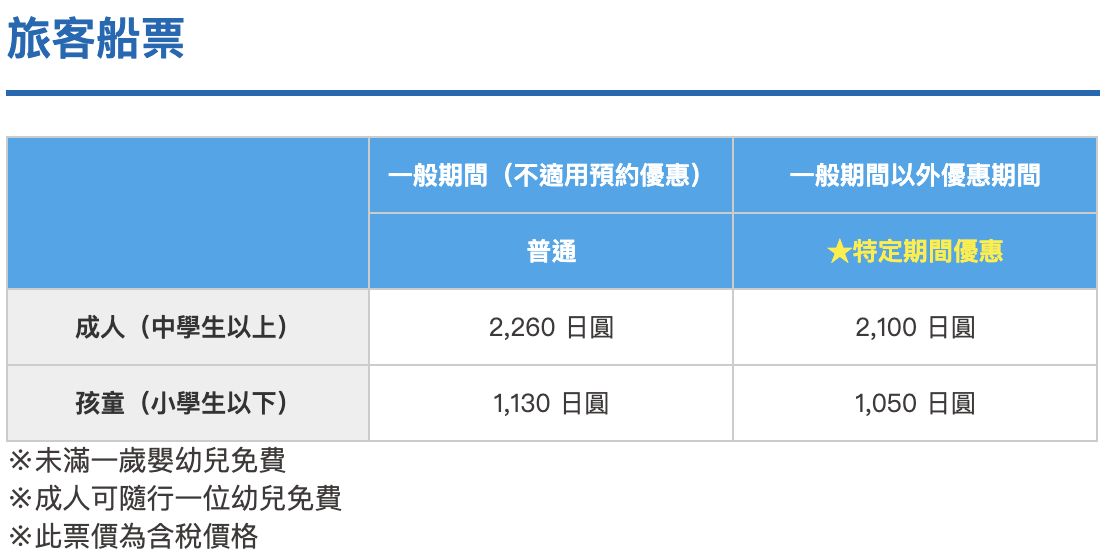 時刻表請見官網:https://www.dream-ferry.co.jp/zh_tw/
