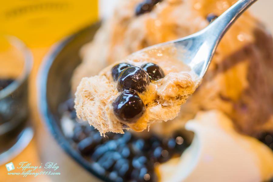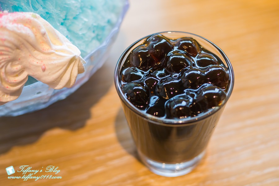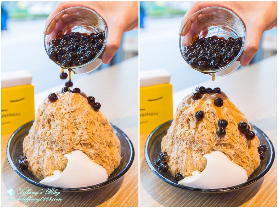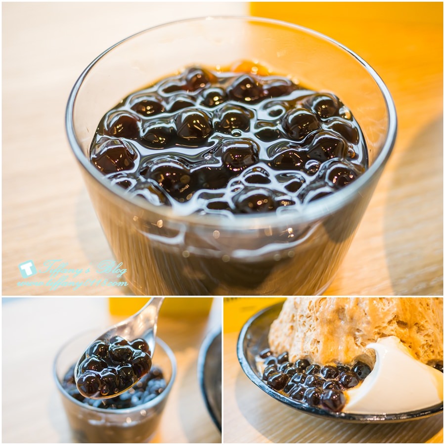因為珍珠是當天現煮的,所以送上桌時是微熱的狀態,建議可以直接把珍珠淋上去,有一種燒冷冰的吃法。
