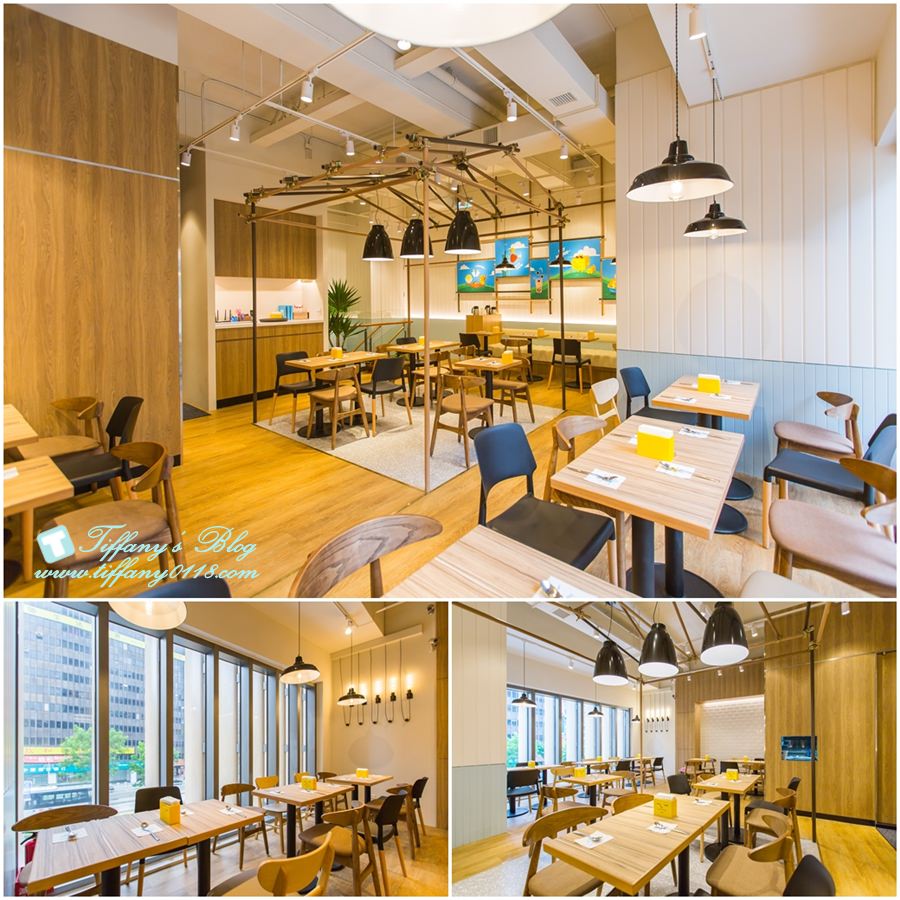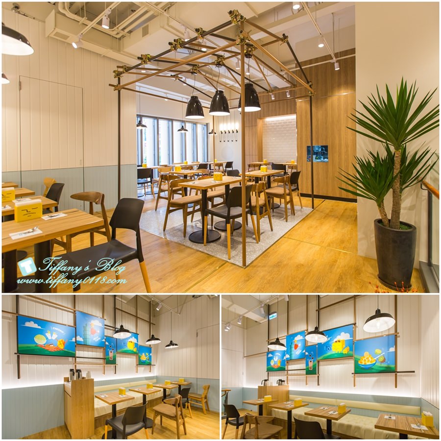 店內主視覺是藍色與黃色,呼應ICE MONSTER的品牌形象,簡約設計中又帶有工業風格,是非常新穎又溫馨的組合。