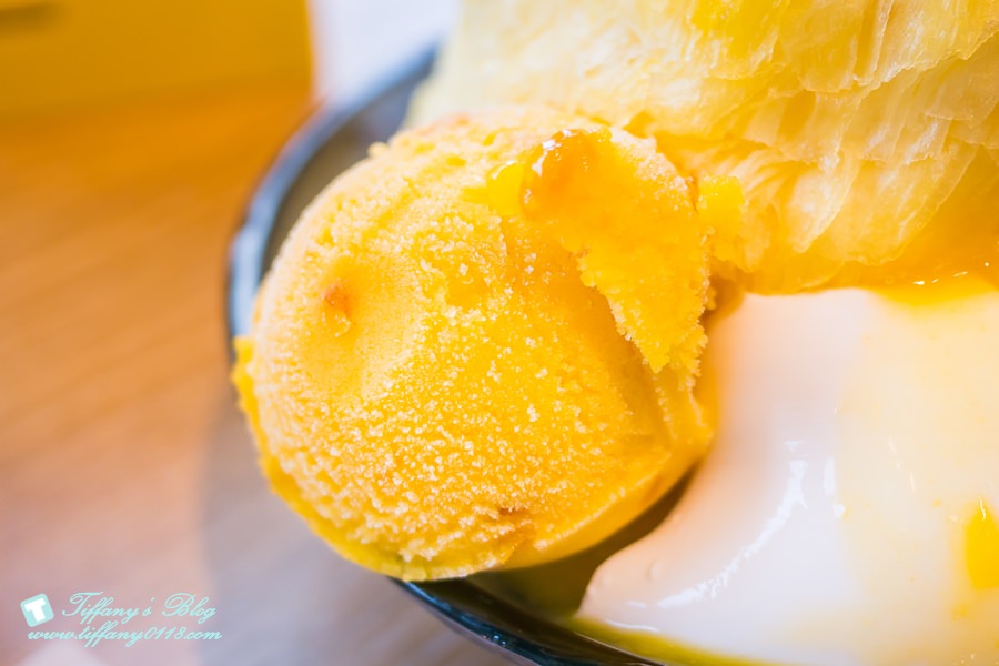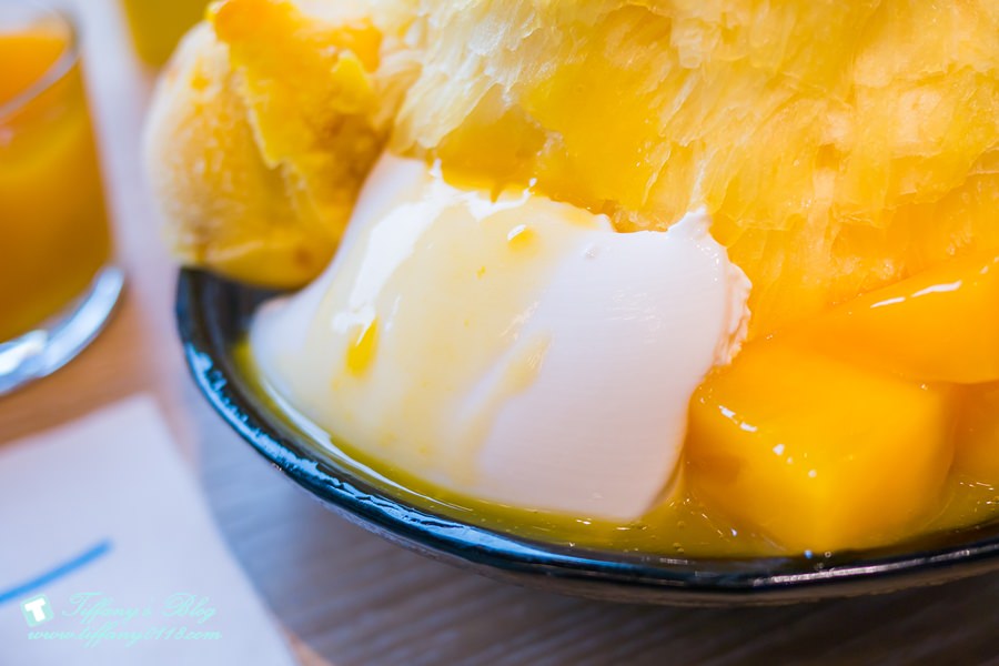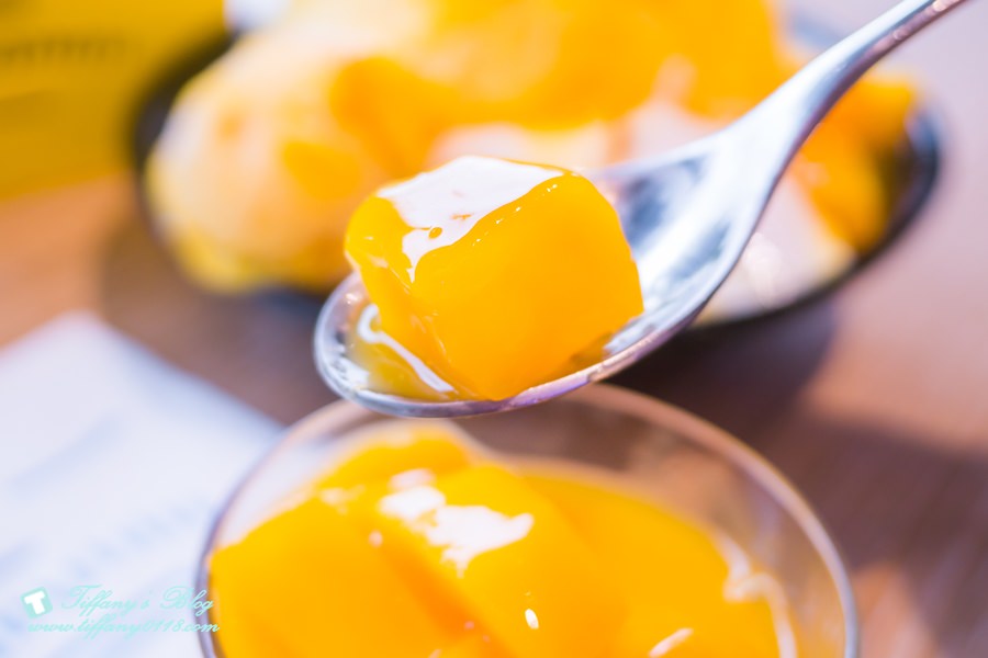 因為是用愛文芒果製成的冰磚,所以吃起來就帶有淡淡的芒果甜香味,淋上芒果醬汁後更能帶出芒果的甜。